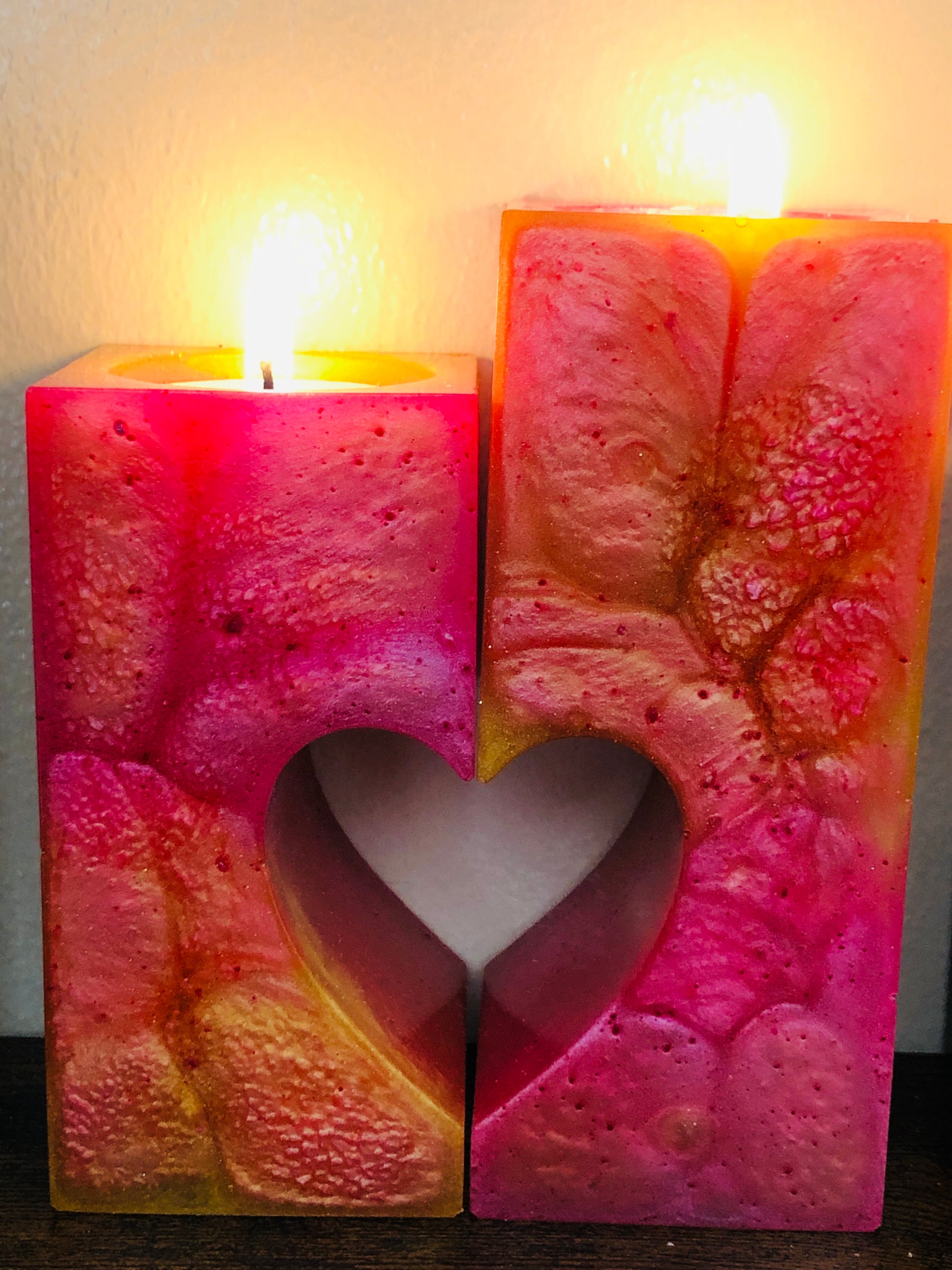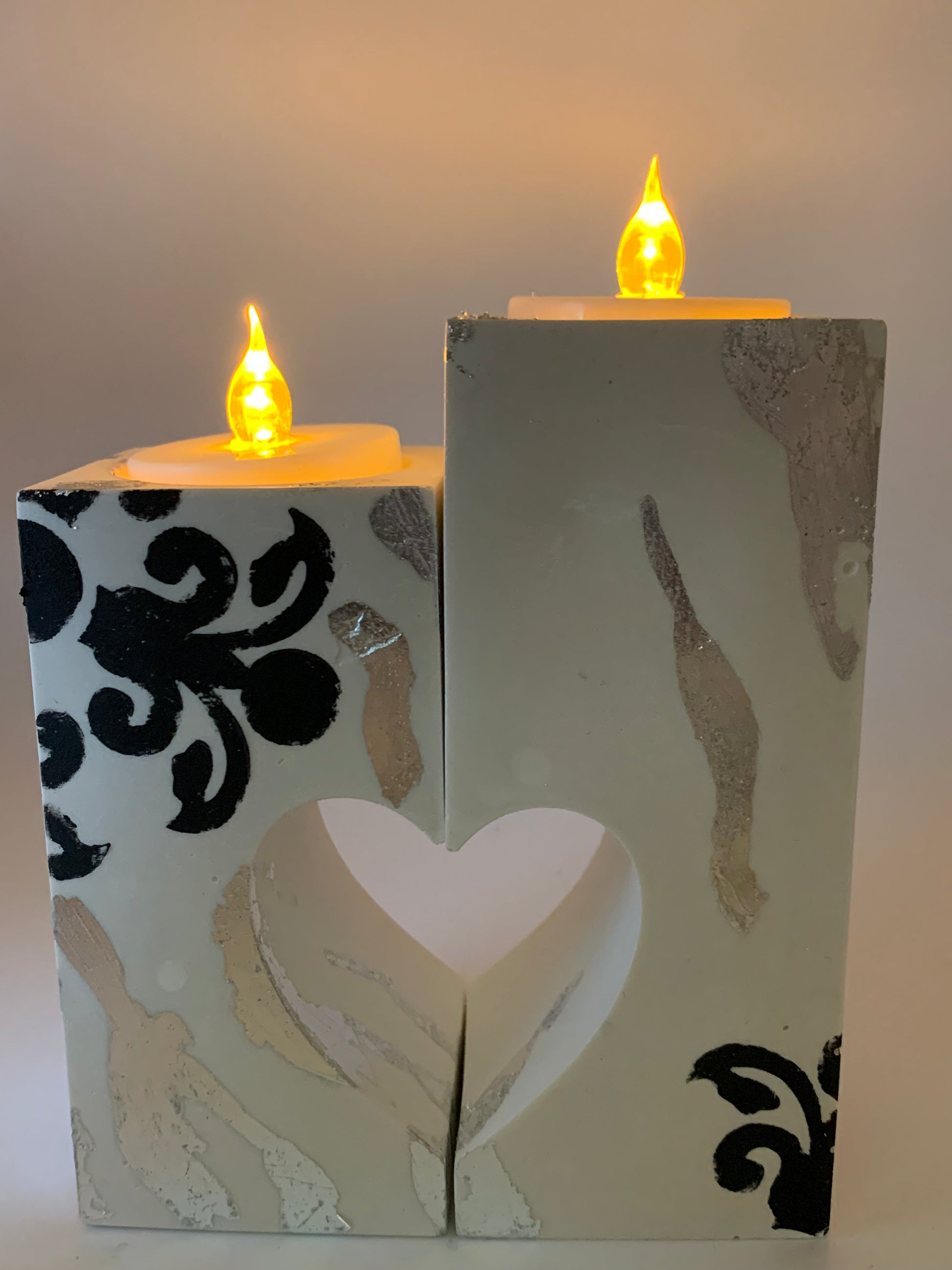 Unlock a world of beauty and tranquillity with The Heart Candle Columns Shoppe. Crafted with stunning unique designs, colours and textures, each desirable pair will add an ornamental touch and create a relaxing mood with the help of tea lights. Original and very arty, these Heart Candle Columns are sure to captivate.